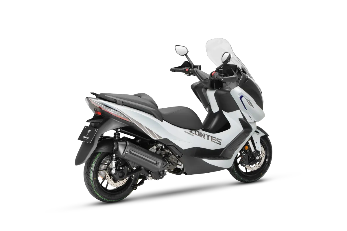 Zontes 368E je maksi skuter koji se ističe svojom naprednom tehnologijom i kompletnom opremom. S jednocilindričnim motorom od 368 ccm koji isporučuje do 38.2 KS i 40 Nm, što je apsolutni rekord u kategoriji, a s spremnikom od 17 litara idealan je za duga putovanja.