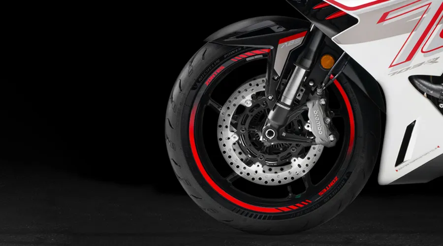 Sustav kočenja je izniman, s istaknutim prednjim Brembo radijalnim čeljustima s četiri klipa i radijalnom pumpom. Uz poluplutajuće diskove od 300 mm, jamče kočenje najviše kvalitete bez narušavanja upravljivosti. Napredne Michelin gume osiguravaju optimalno prianjanje u svim okolnostima.